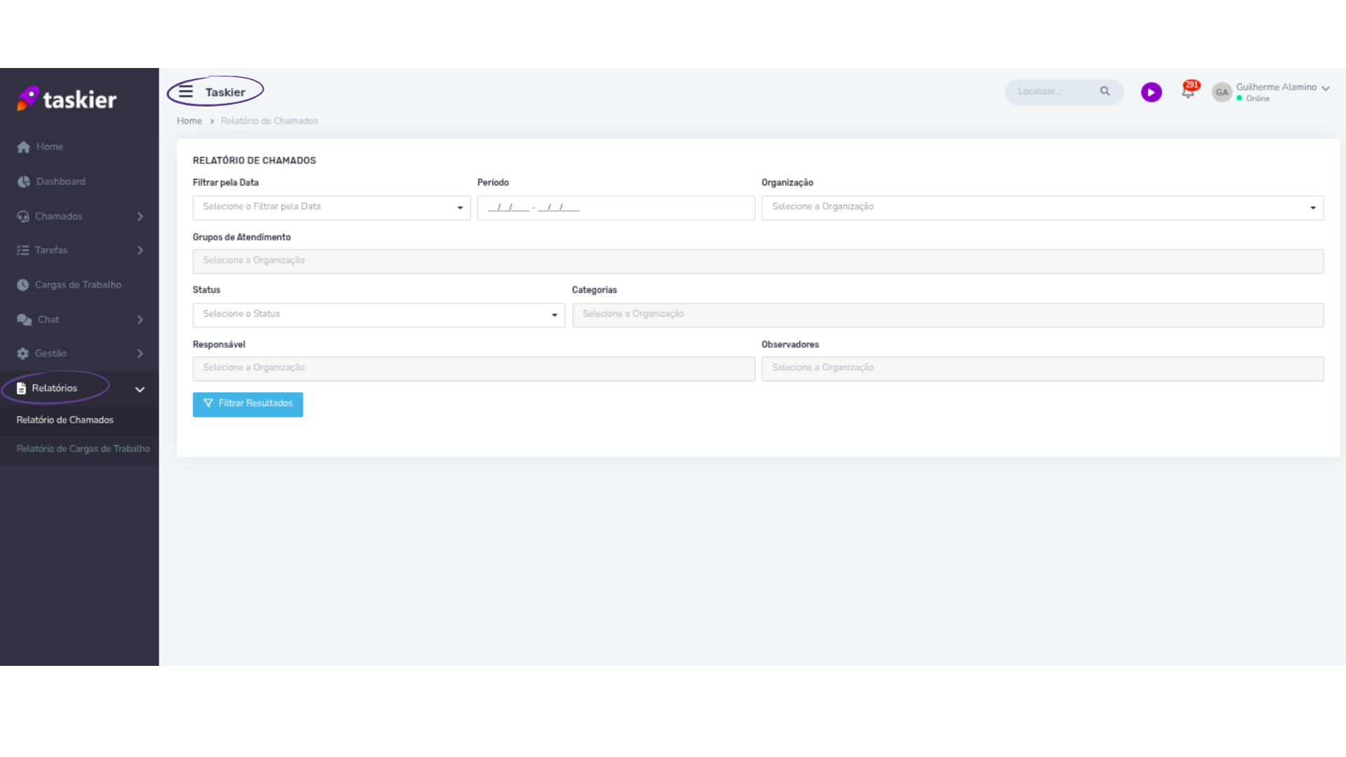 Você pode acessar e utilizar a funcionalidade de Relatório de Chamados através