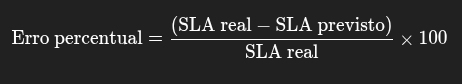 Interpretação: o tempo real ultrapassou o tempo previsto em 25%, indicando atraso em relação ao SLA.